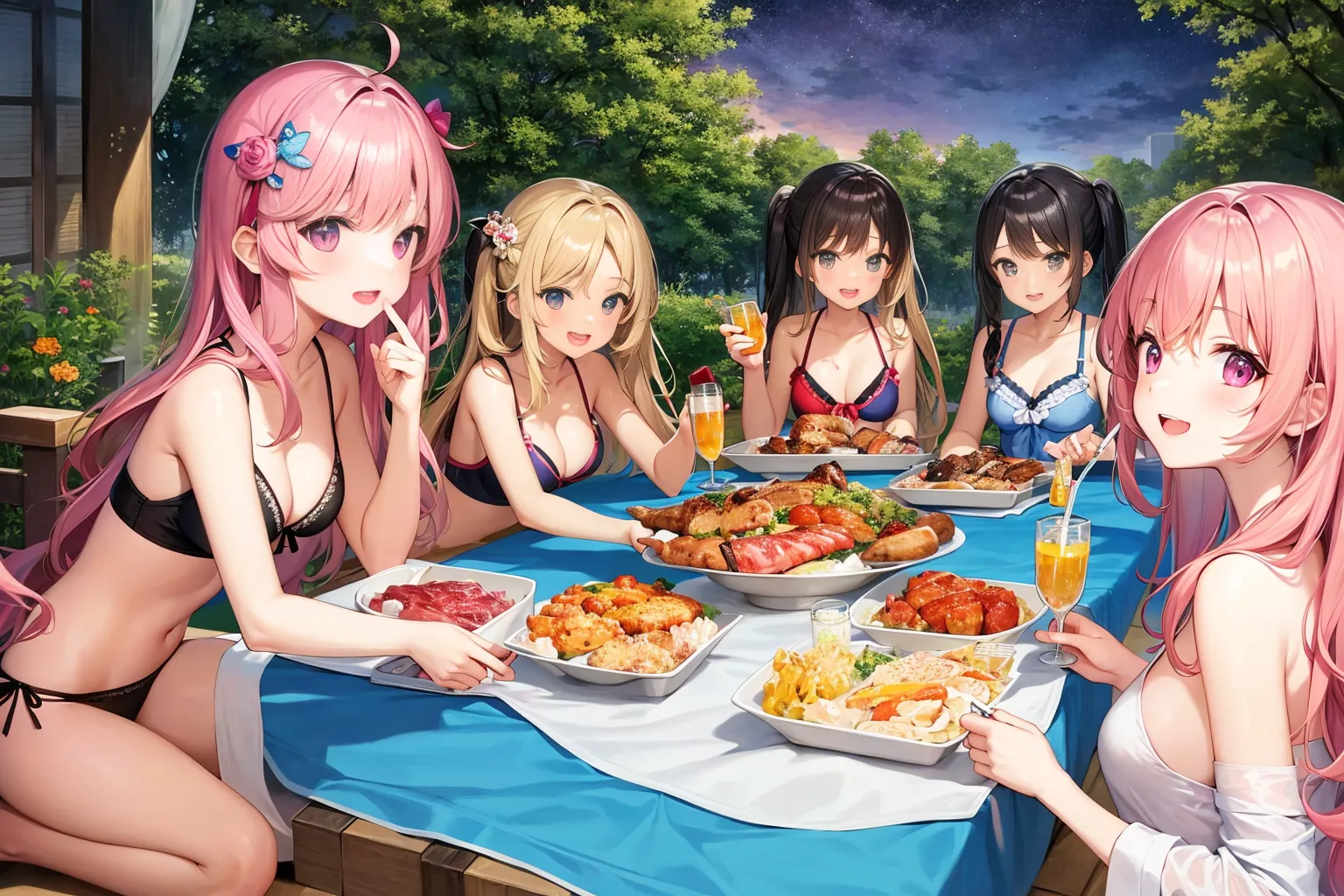 #majinai #masterpiece #best #quality #masterpiece #loli #4girls #friends #various #hairstyle #party #colorful #bikini #house #casual #sleepover #fun #laughter #panties #comfortable #cozy #relaxation #group #bonding #conversation #outdoor #camp #laughter #friends #youthful #lovely #item #fun #bonding #midnight #half #naked #meat #BBQ #drinking