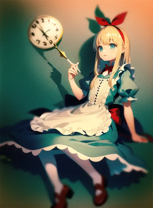 #majinai #Alice #in #Wonderland #Alice #a #curious #young #girl #has #fallen #down #a #rabbit #hole #and #found #herself #in #a #magical #world #filled #with #peculiar #creatures #and #strange #occurrences #She #wears #a #blue #dress #with #a #white #apron #and #has #long #blonde #hair #Surround #her #with #the #Mad #Hatter #the #Cheshire #Cat #the #Queen #of #Hearts #and #other #whimsical #characters #from #the #story