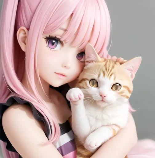 #majinai #100-layer #best #quality #1girl #chibi #holding #cat #cat #outstretched #face #each #other #stamp #pink #hair #beautiful #pink #eyes