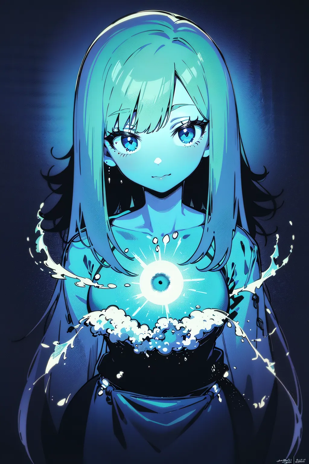 #majinai {masterpiece} #illustration #beautiful #detailed #colourful #finely #detailed #dramatic #light #intricate #details #extremely #best #beautiful #view #eyeball #hair #close #1girl #eflective #hair #particle #emotionless #standing #beautiful #face #light #black #hair #fluffy #medium-short #hair #bangs #1_slim_white_ribbon #on #left #hair #aqua #eyes {Round #eyes #rounded #Eyelids #Brilliant #smile #collared #shirt #blue #and #black #Military #highschool #dress #Fuller #face #looking #at #viewer