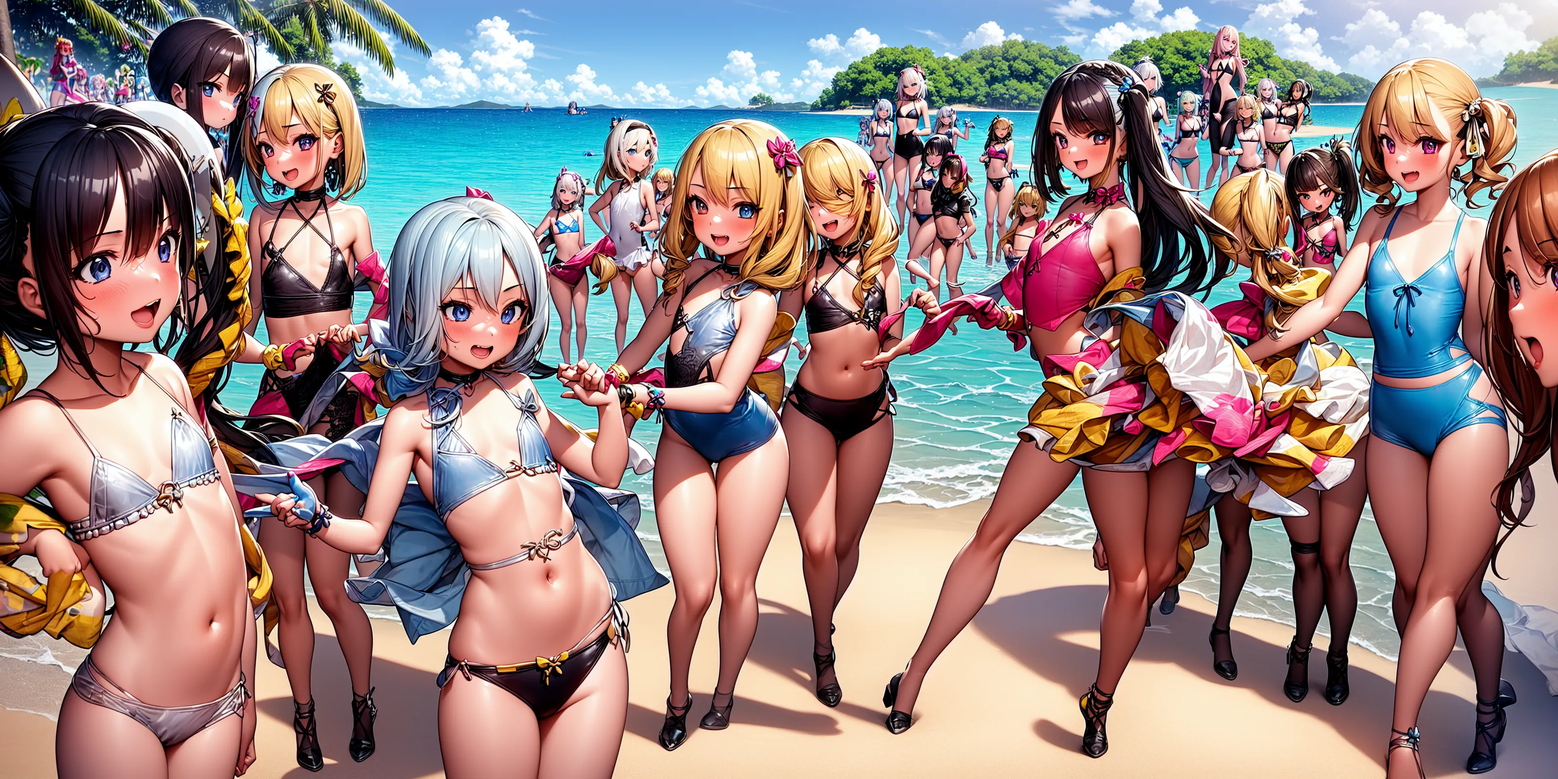 #majinai #photorealistic #6girls #many #girls #fullbody #child #loli #flat #chest #bikini #Exposed #skin #smile #outdoor #beach #enjoy #crowded #Various #variety #hairstyles #facials #eye #colors #skin #Colourful #hair #multi #colored