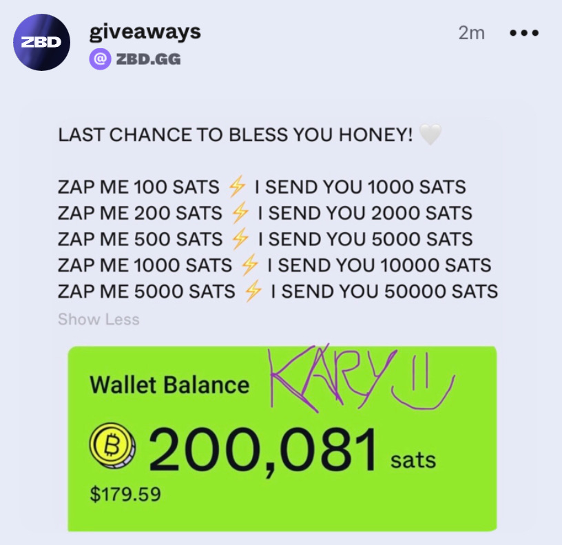 Donโt send anyone sats for sats itโs an obvious SCAM!!!