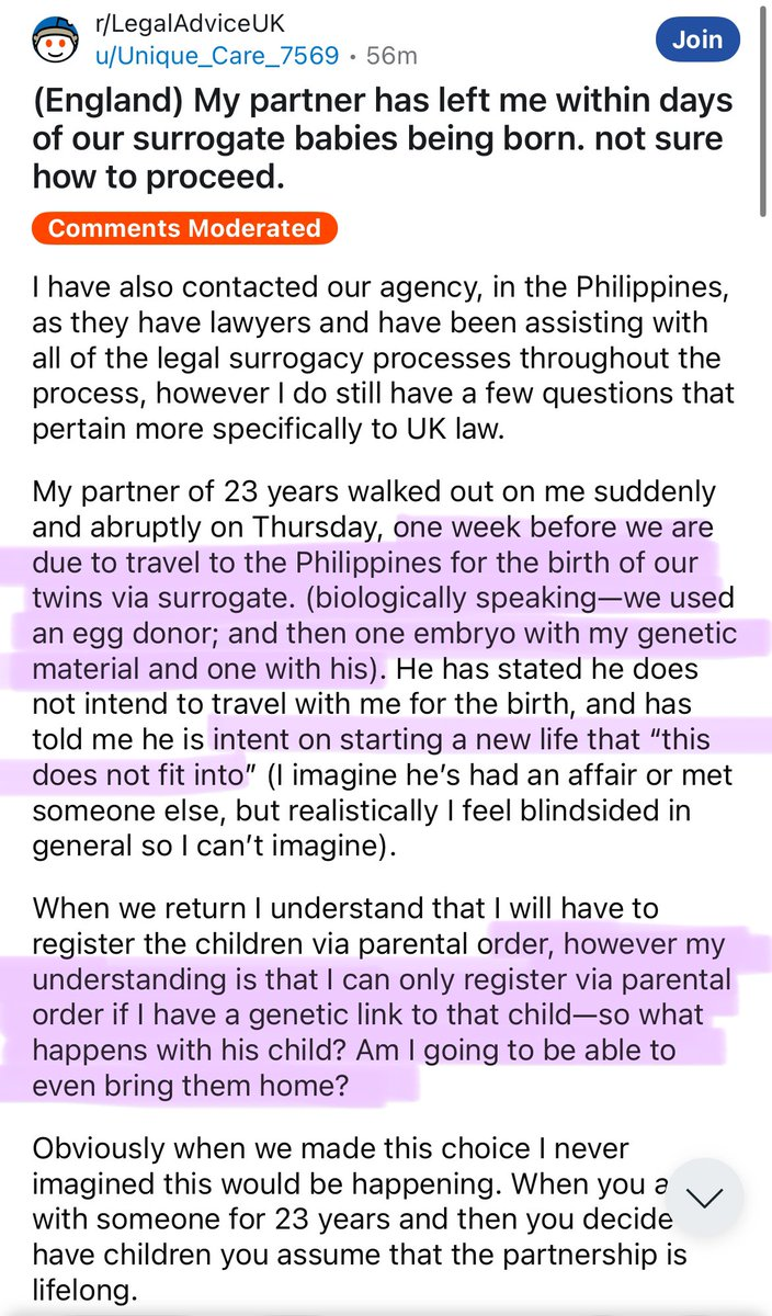Several surrogate mothers who were signed up with Surrogacy UK have told me they were removed from groups after raising doubts, concerns or for expressing feelings reluctance or regret. As this doesn’t align with their narrative they are ejected and blocked. These women can no longer access the social networks designed to support them, they have no one to talk to outside of their own friendships an family and as surrogacy is presented as a unique and alternative way to have a family, many do not understand the intricate and complex emotions that come to a head in surrogacy during pregnancy and postpartum.