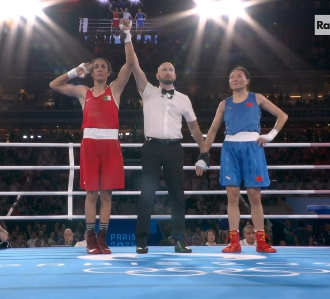 Imane Khelif just defeated Lang Liu to win a gold medal in the Olympics.