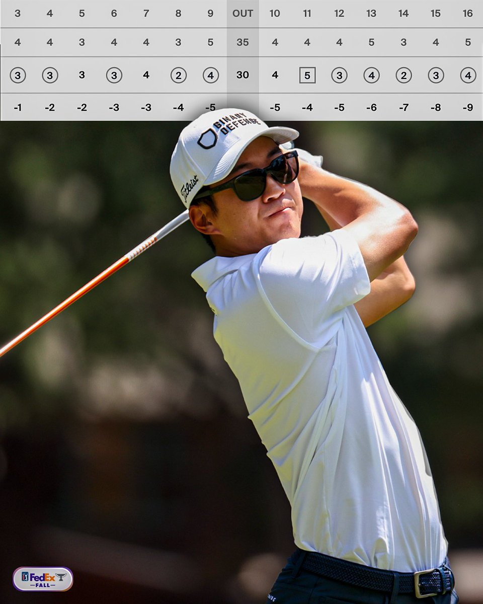 He gets within one shot of the lead at the turn. https://t.co/Rx3UQWx7bu https://video.twimg.com/amplify_video/1848116638798729218/vid/avc1/720x720/4wRjURm8i4_yq0bv.mp4?tag=14