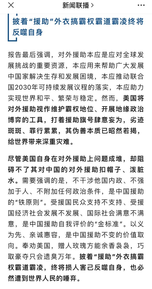 中共新闻联播批美国对外援助。