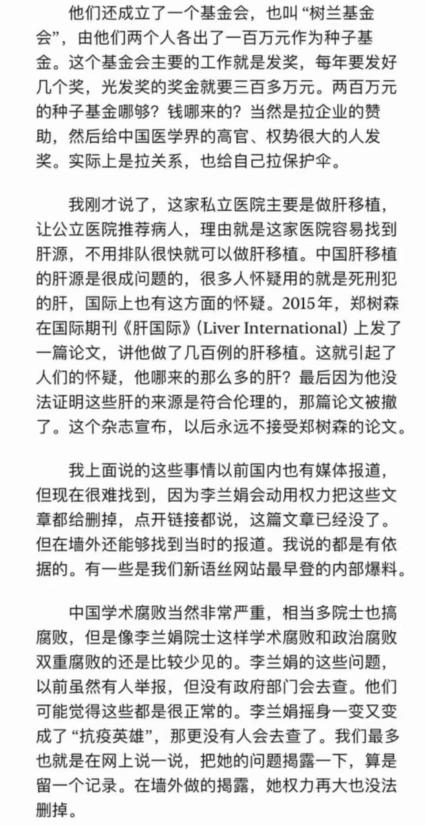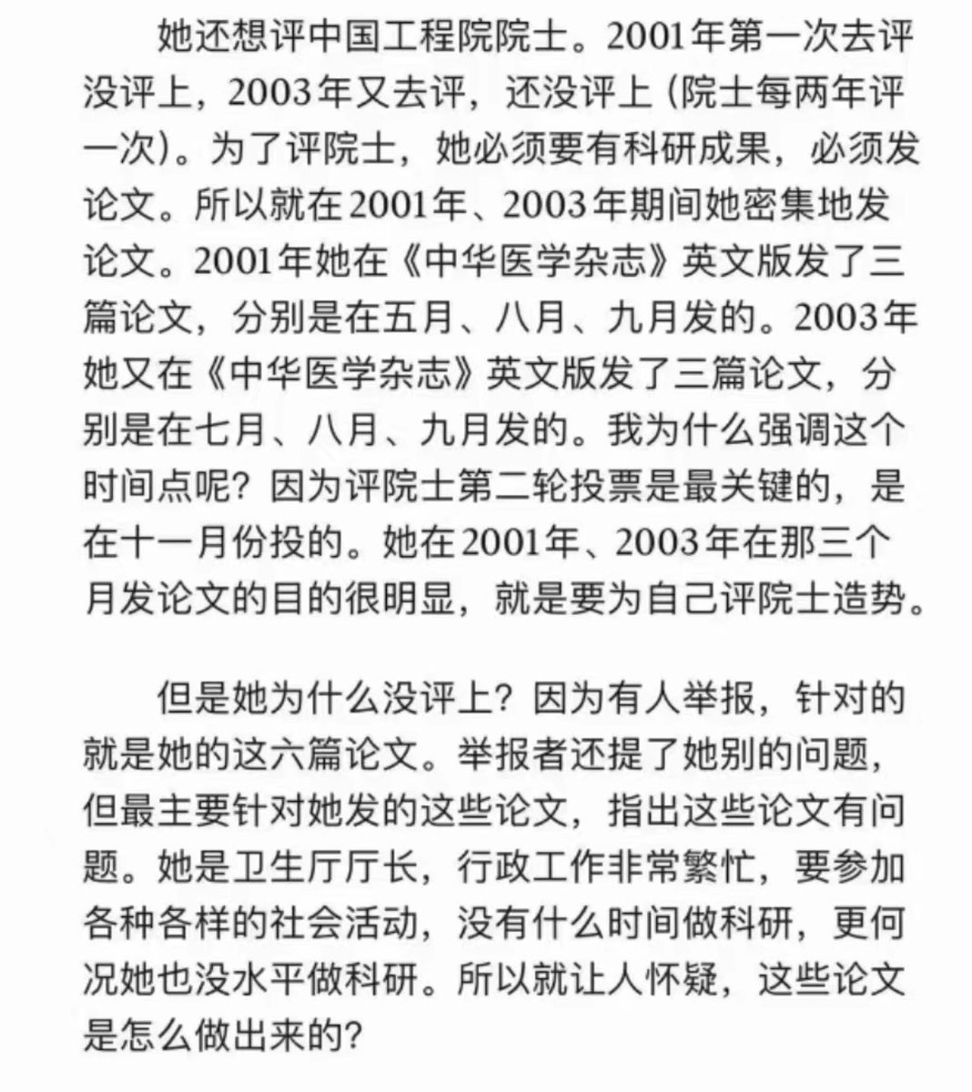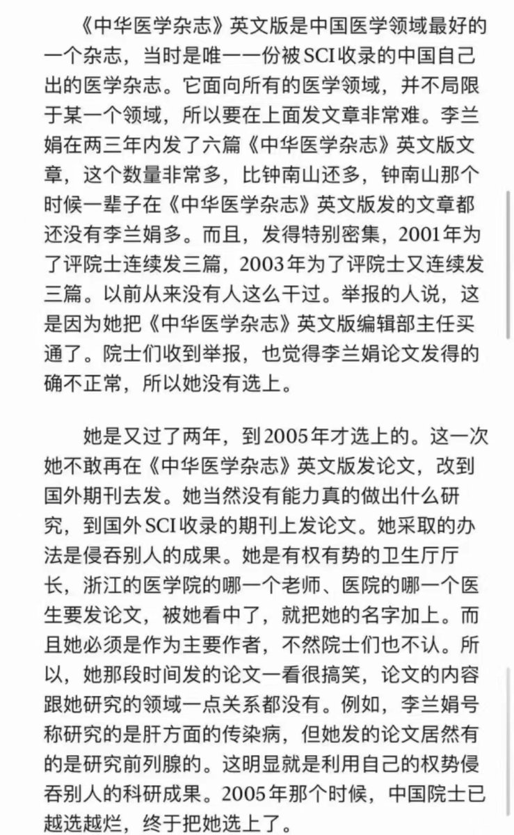 中国两院院士里面李兰娟这样的还不少呢,没有自己实际的学术积累和认知水平,只是凭自己所掌控的资源霸占他人研究成果而发表论文,竟然搞得风生水起,貌似很学术的样子。这些院士不除,中国学术就没希望,就不可能有真正的学术,哪怕国家投资再多的科研经费,依然会没有一流的学术成果。 https://t.co/i5gNr3v6di