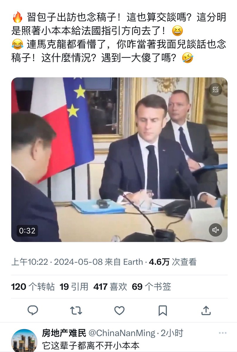 习近平说:“有一千条理由把中美关系搞好,没有一条理由把中美关系搞坏”。可是,外交部的一些人就是破坏中美关系。 https://t.co/bHj20nu4T4 https://video.twimg.com/amplify_video/1787977166400958464/vid/avc1/720x1560/UMzuGkFAWz0tNL58.mp4?tag=14