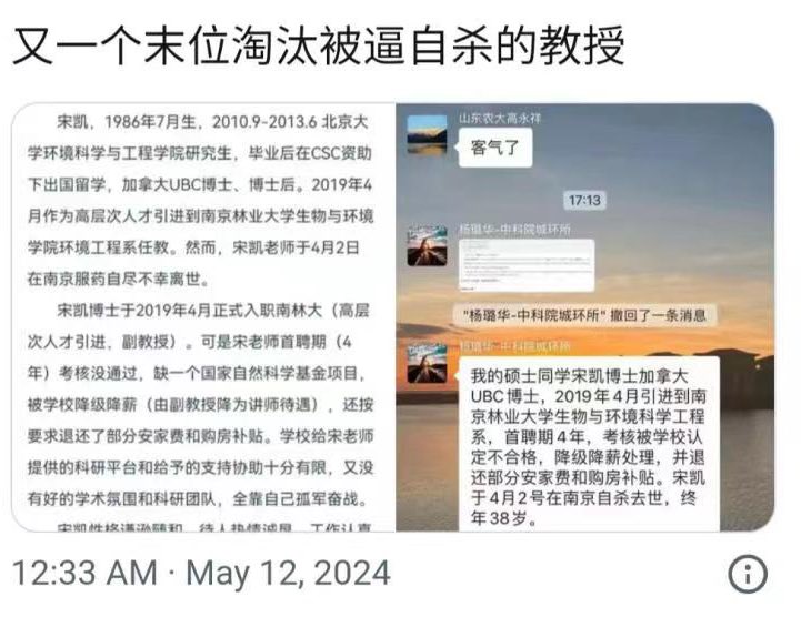 王鸿飞说中国85%教授不合格,饶毅说中国大部分博士不合格。可是那么多大学、那么多教授、每年招那么多博士生、搞了那么多非升即走的研究岗,绞肉机式人才竞争机制。结果呢,全世界大学最多、教授最多、博士硕士最多,原创性结果依然不如欧美和日本,自然科学里只有一个诺贝尔奖(屠呦呦)。什么问题?体制问题,没有党管教育、没有教育部管大学,各个大学独立自主,才有学术自由,才有原创性思想。