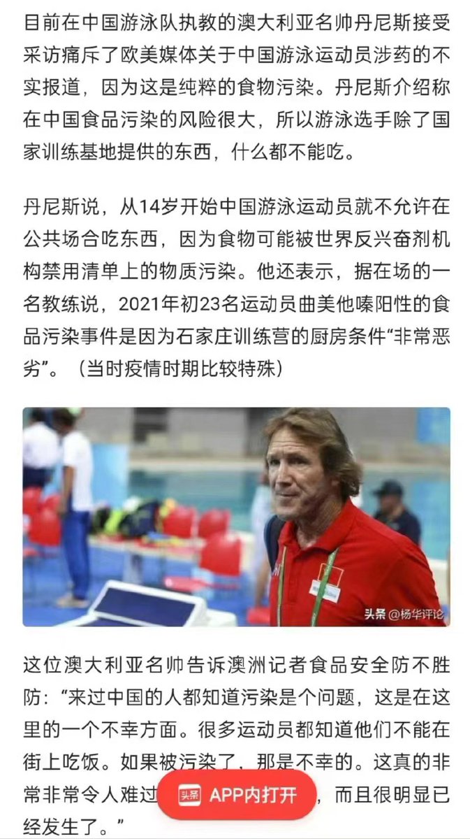 中国参加奥运会的游泳运动员被查出服用违禁药物,政府给出的理由是中国食品安全有问题。这个解释好,好就好在暴露中国人平常吃的什么?外国人还敢去中国旅游吗?食品污染,造成医院人满为患,创收增加,因贪腐造成的养老金亏空就不是问题了,政府稳赢。 https://t.co/MIhdgxObGY