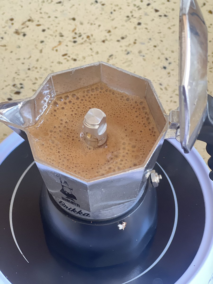 感觉摩卡壶做出来的咖啡就是比较浓郁。有木有油脂感觉和咖啡豆关系比较大?倒在杯子里就没啥了。🤣感觉没有咖啡机好喝hhh但是还可以 https://t.co/aE61SuQgrA