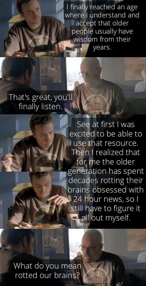 The irony, somehow they have the nerve to blame problems on the generations after them, whom they were also responsible for raising.