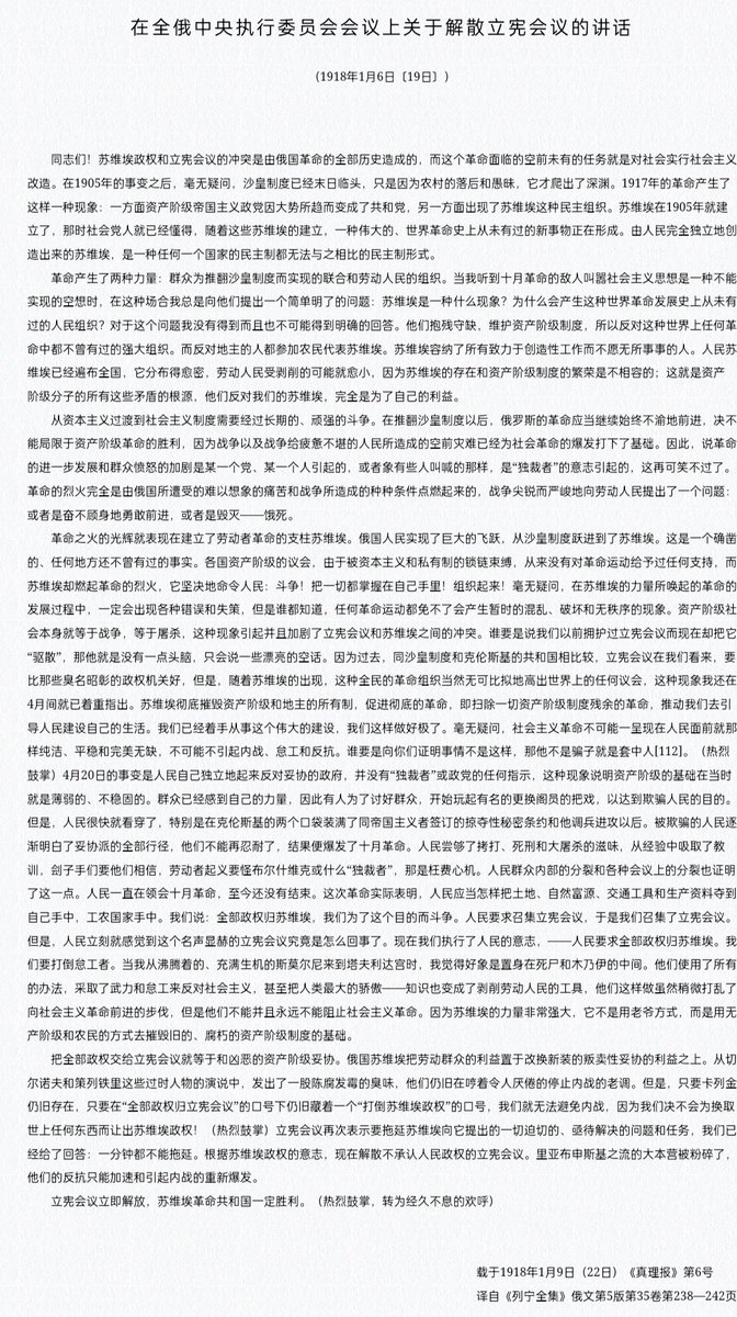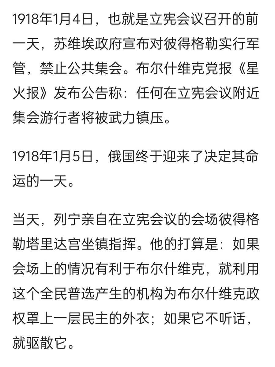 “当列宁得知支持立宪会议的群众已被镇压…局势完全可以放心…”