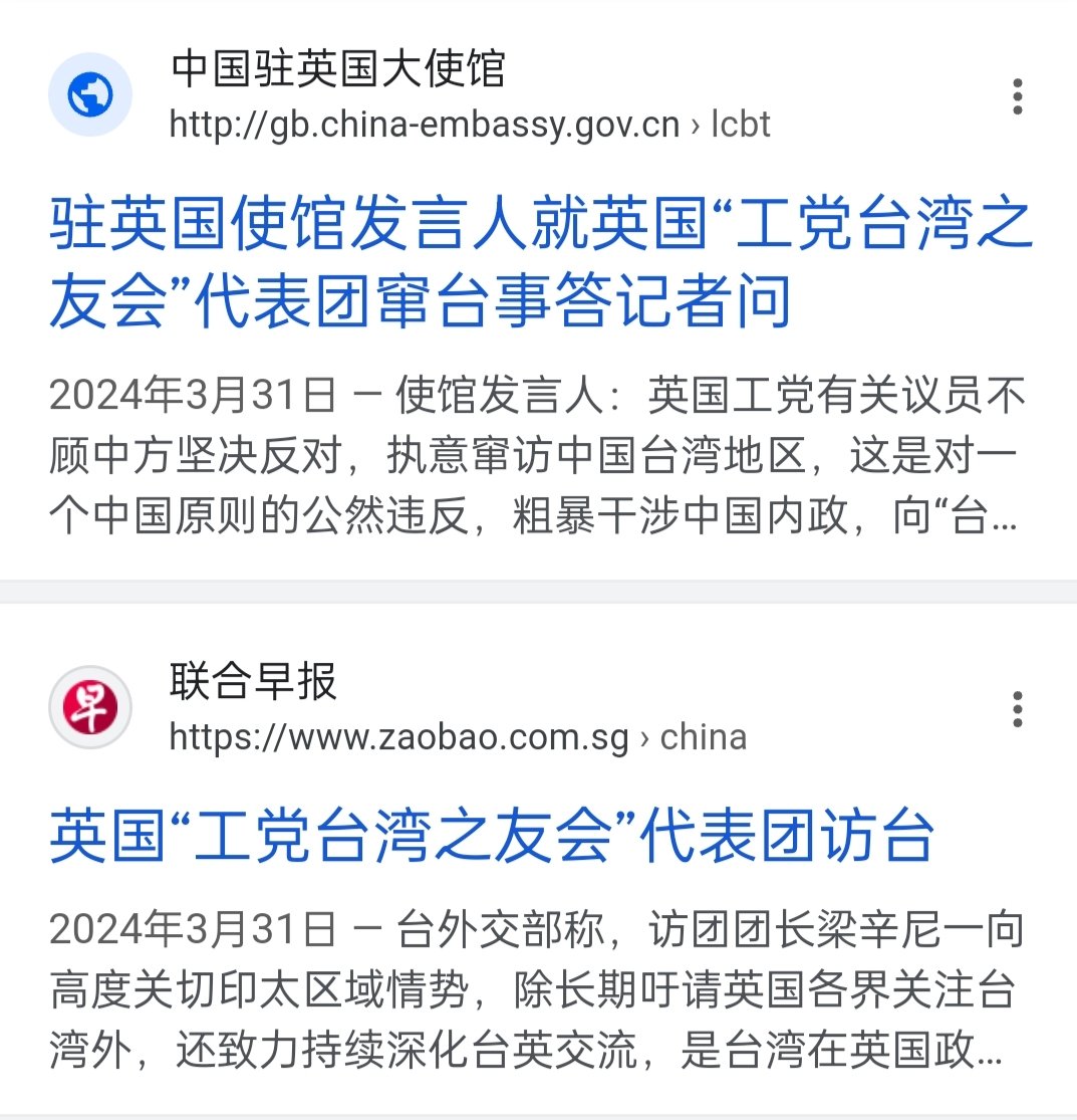《中共驻英国使馆发言人严厉抗议英国工党议员“窜访”台湾》