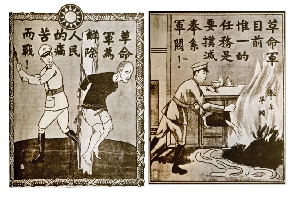 4,爱百姓:革命军爱百姓,军民一家;北洋军,欺压百姓,视同牛马