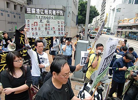 谭作人被逮捕判刑后,香港有市民和团体前往中联办举行抗议——