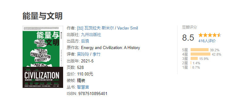 推荐这本《能量与文明》,读完后你就会掌握很多有关供给的fact以及相关视角。