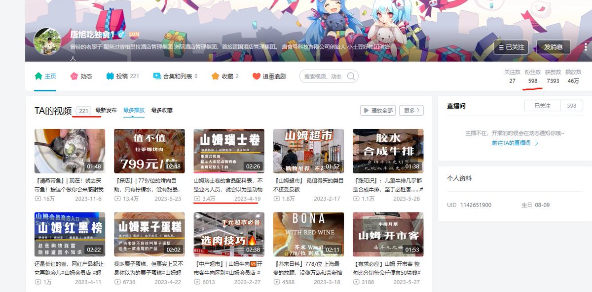 一个相关领域有“大厂”履历,讲的也很专业并且严谨(比如山姆瑞士卷那期只说了去的那家店),做的视频数量也够但是只有几百粉,这就是视频平台的现状吗... https://t.co/YsIJs6W9wK