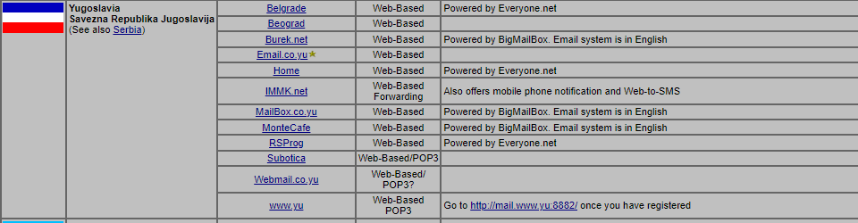 メールサービス調べてたらユーゴスラビアのやつでてきた(どんだけ古いんじゃ)