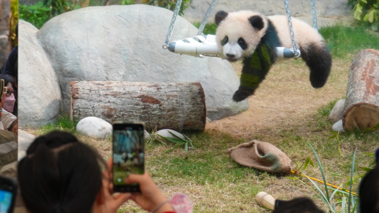 More than 1,000 excited fans visited the park on Sunday morning for the public debut of panda cubs ‘Elder Sister’ and ‘Younger Brother’.