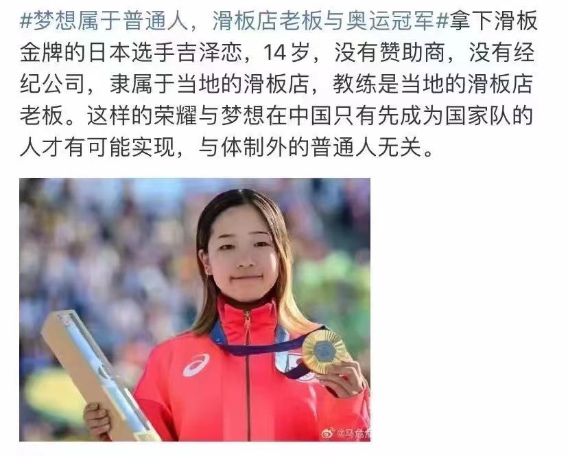 网友:举国体制从广泛的人口比例中发现有运动天赋的小孩子,然后把他们抓进集中营一样的学校去训练,从训练开始到拿奖牌,基本没有什么娱乐活动见家人也很少,过不了正常人的生活,也得不到足够义务教育培养,跟社会严重脱节…如果你没拿奖牌,一将功成万骨枯,那就直接报废,十几年前不就有前体操运动员街头卖艺翻跟斗倒立乞讨的?