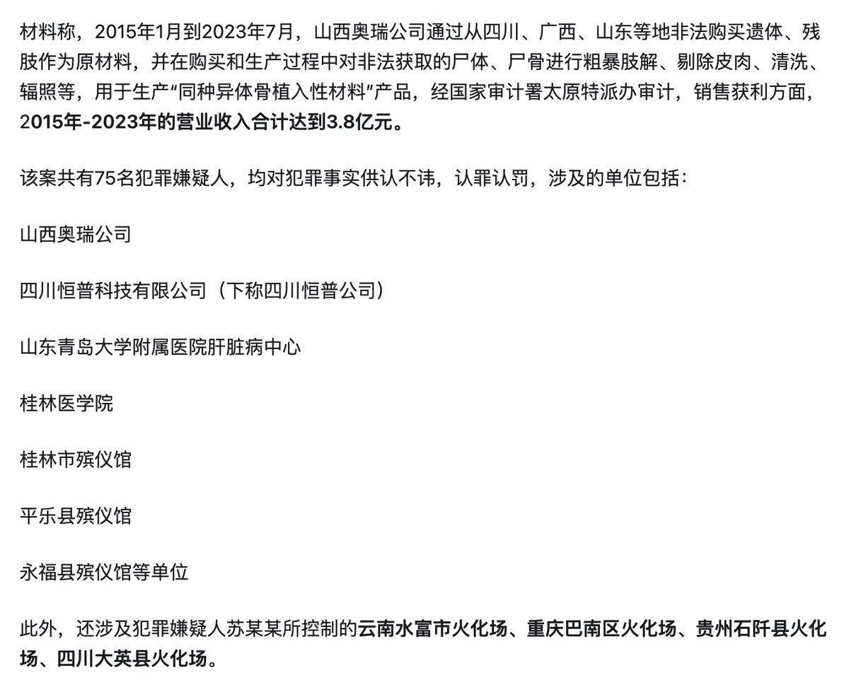 这起案件由公安部刑侦局调查,涉及长春,山西、四川、广西等地。光是四川某地涉案尸体就高达几千具,涉案金额三点多亿,在案被告人七十多人