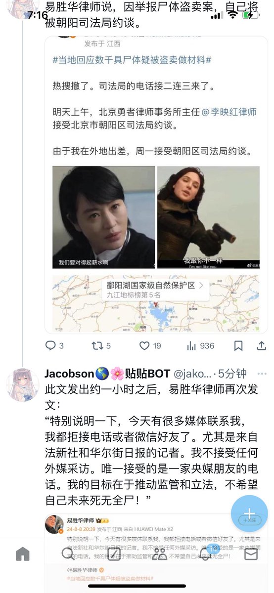 最新消息:揭露山西奥瑞生物公司和四川、广西、重庆、贵州等四家火葬场合作,盗取4000多具尸体的易胜华律师已经被北京公安局约谈了!