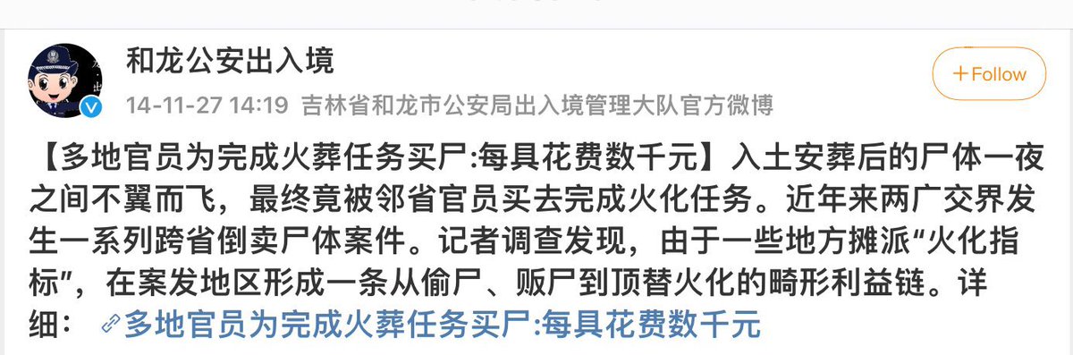 中共正在全网封杀该新闻!现在微博搜“殡仪馆”很难搜到该报道。