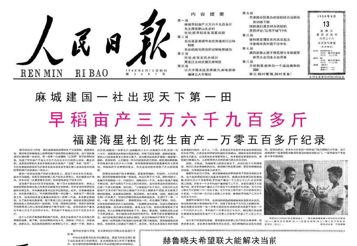 1958年的今天,人民日报:“麻城建国一社出现天下第一田,早稻亩产三万六千九百多斤” https://t.co/nY7RHxhtdF