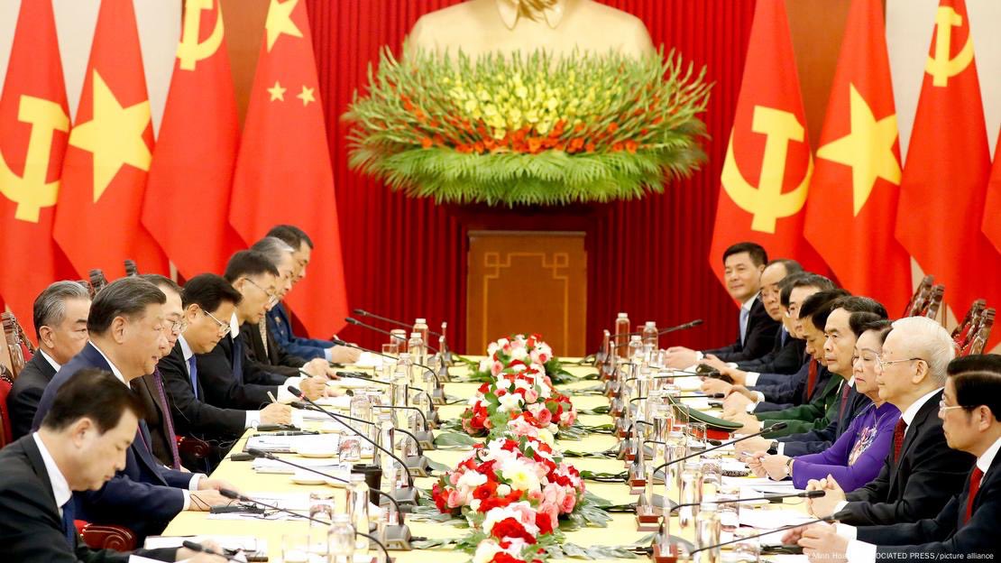 习近平同越共中央总书记、国家主席苏林会谈。(新华社)
