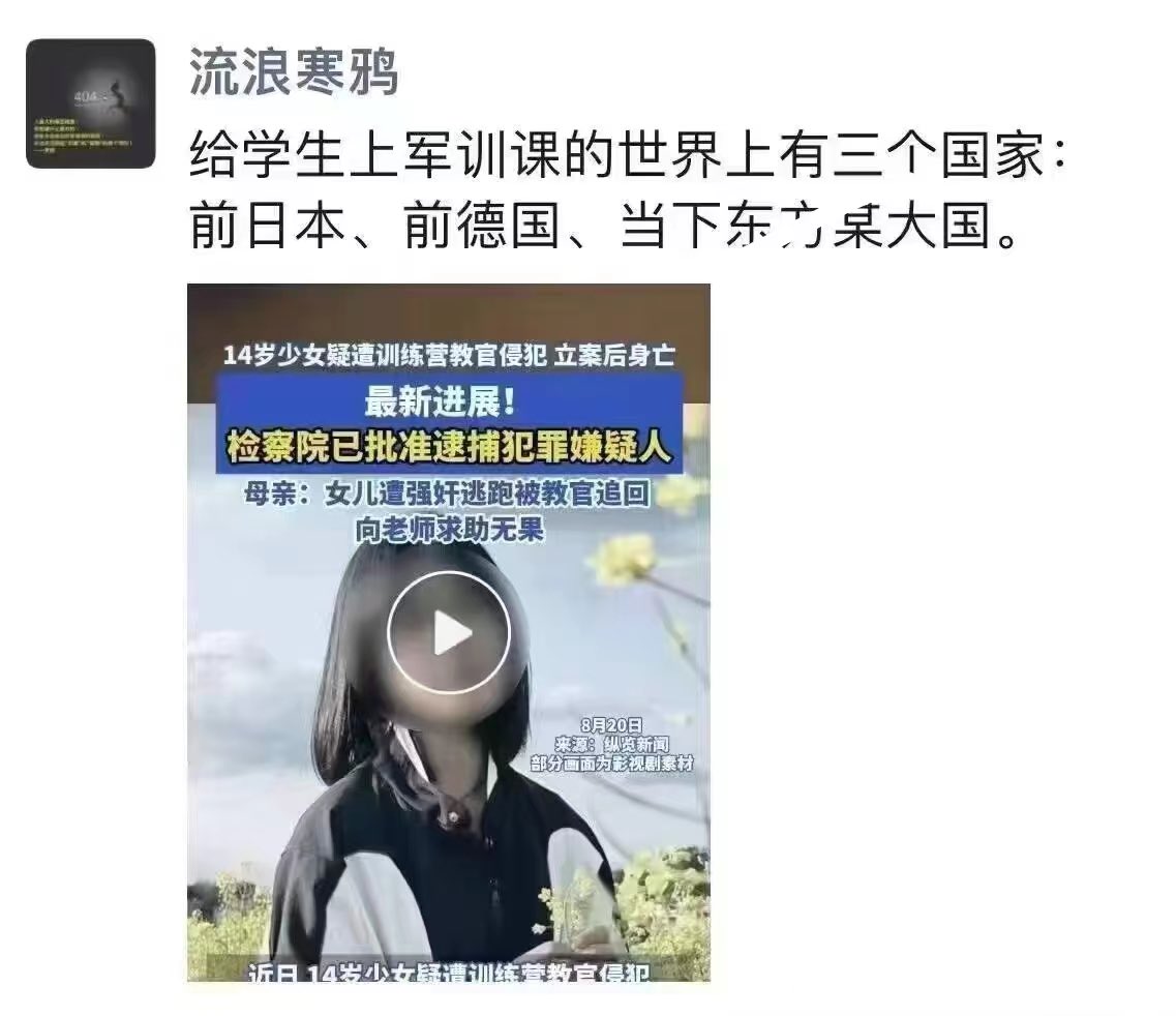14岁花季少女被教官当众强奸,少女自杀而亡。 https://t.co/125rYjv6i1