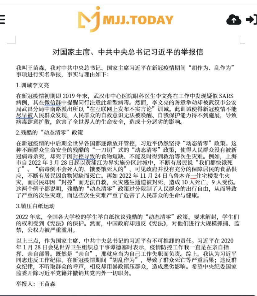 最新消息:网友“王苗森”称,自己在国内知乎网站贴出举报习近平的帖子! https://t.co/Baq9pcePhP
