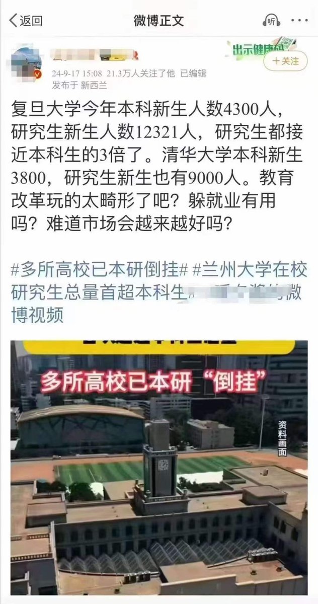 为躲就业,复旦大、清华大学研究生新生人数是本科新生人数近的3倍 https://t.co/jVrW7yBSIR