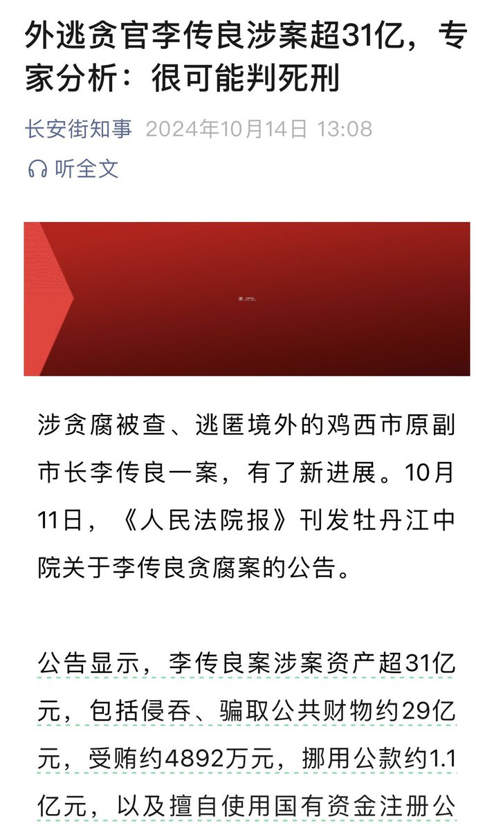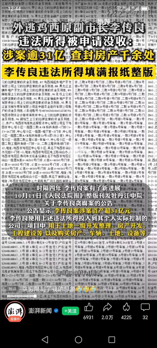 鸡西查封了李传良31亿元和1021处房产,这房产数量相当于该市四个月的销售量。