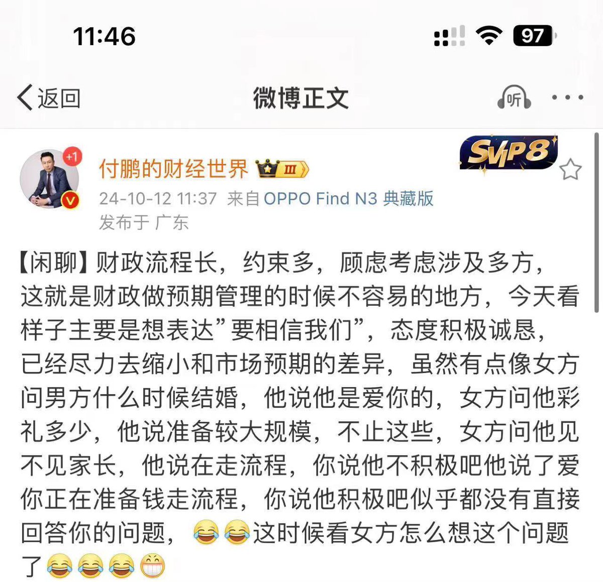 付鹏的这条微博被删,中国任何看空股市的言论都在被封杀,看来是要建信息茧房,让散户闭眼往里冲,用存款全力做多接盘。