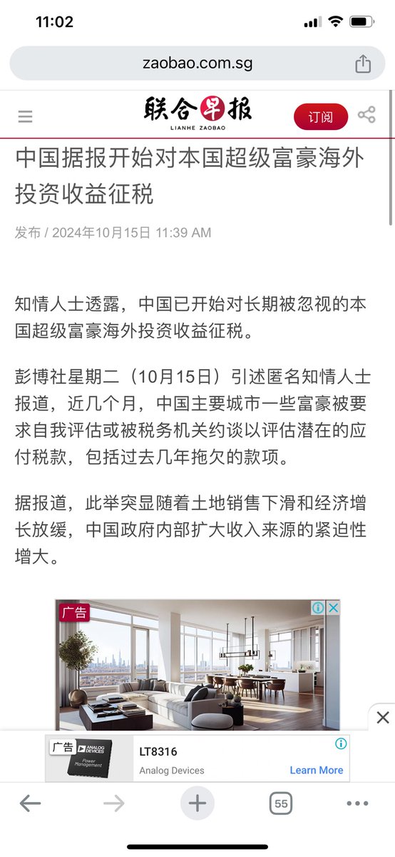 彭博社:知情人士透露,中国已开始对超级富豪的海外投资收益征税。近几个月来,中国主要城市的部分富豪被要求进行自查或被税务机关传唤。知情人士称,所接触的个人将面临高达20%的投资收益税。其中部分富豪拥有至少1000万美元的离岸资产,部分则是在香港和美国上市公司的股东。