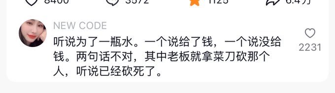 10月19日,重庆时代广场,网传店主为了一瓶矿泉水是否付费,砍死一名顾客….. 也有说法是红木家具店员工和保安发生纠纷砍人
