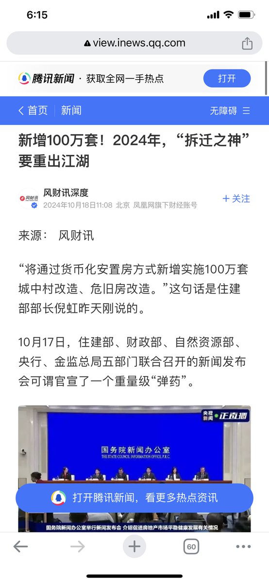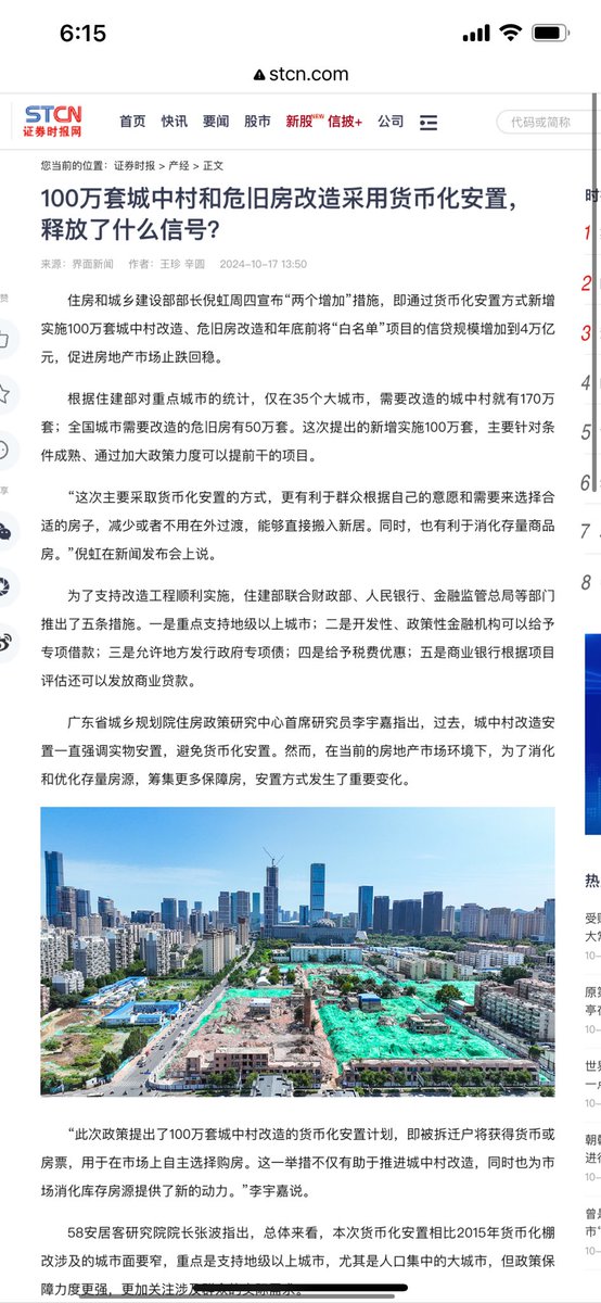 近日,住建部、自然资源部、中国人民银行、国家金融监督管理总局负责人召开了促进房地产稳定的会议,就是救市大会。试图通过货币化安置等方式,新增实施100万套城中村和危旧房改造。