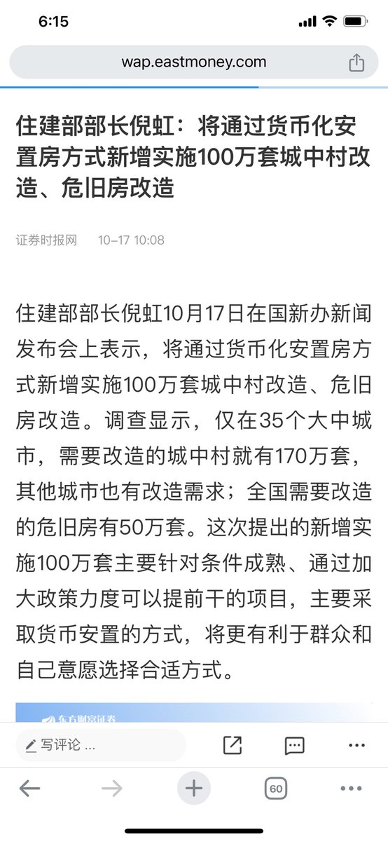 所以今年的100万套算不上很大的规模,也不可能全国大范围铺开。对楼市的刺激作用有限。而且应该是房票为主,不是现金。作用更有限。