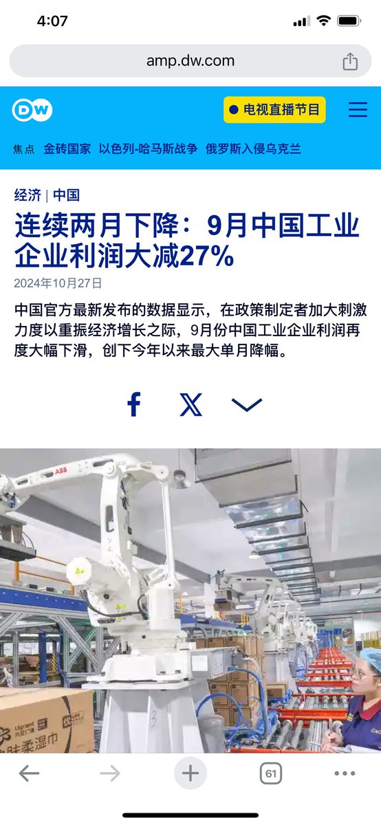 9月中国规模以上企业利润大减27%,海内外刷屏,基本是断崖式暴跌,这意味着中国印钞救经济彻底失败。继土地财政崩盘后,中国政府另一大税源——工业税收来源将彻底熄火,中国财政崩溃指日可待。