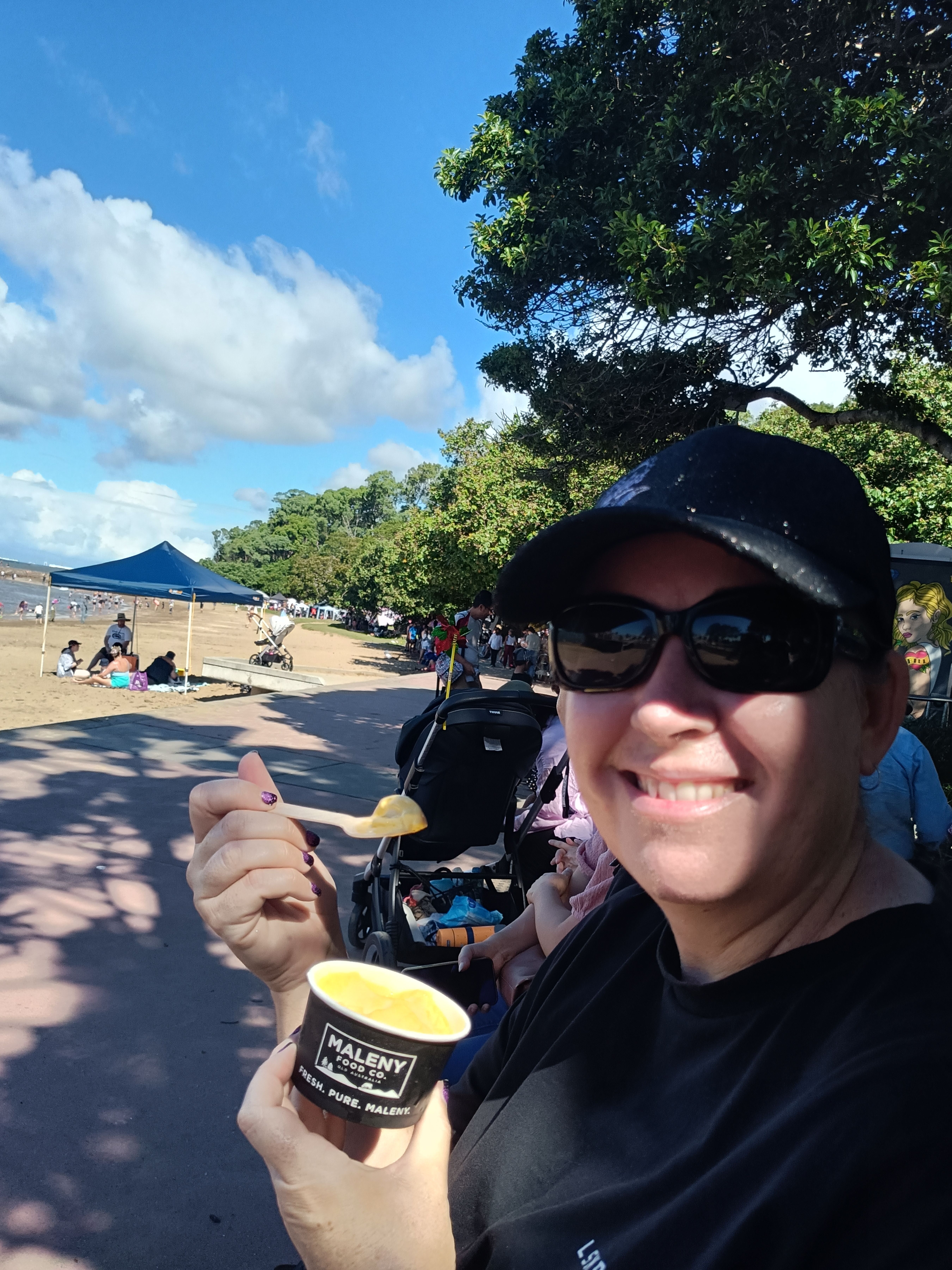 A tasty Mango 🥠sorbet with my wife at the Good Friday Bluewater Festival today at Sandgate Queensland