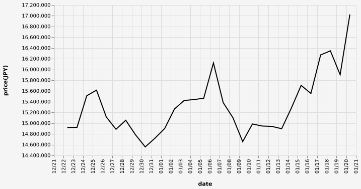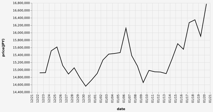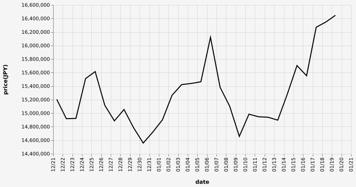 …現在のビットコインの日本円チャートだ…