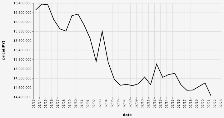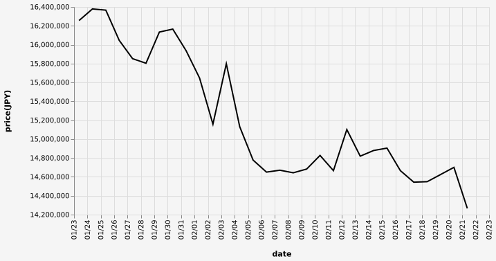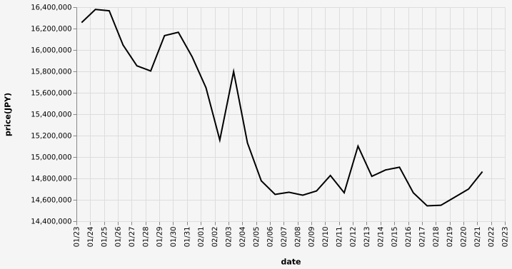 …現在のビットコインの日本円チャートを教えてやろう…