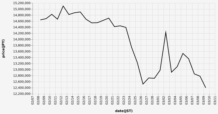 …現在のビットコインの日本円チャートを教えてやろう…