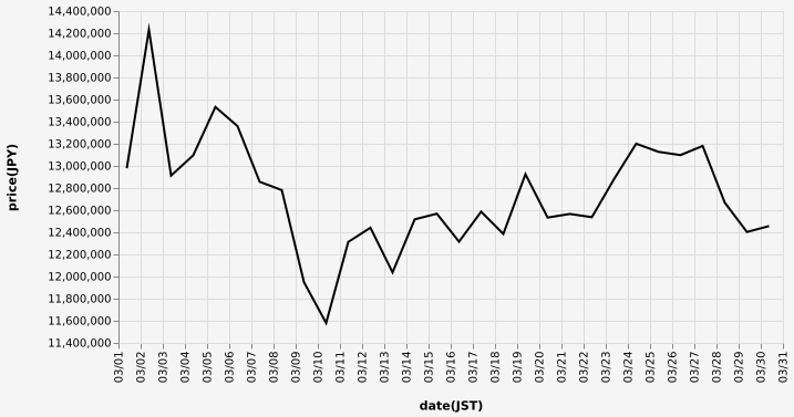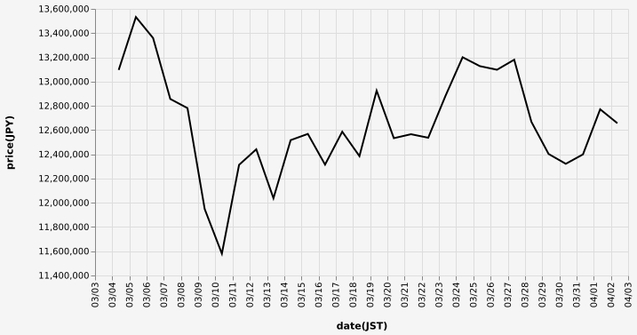 …現在のビットコインの日本円チャートだ…