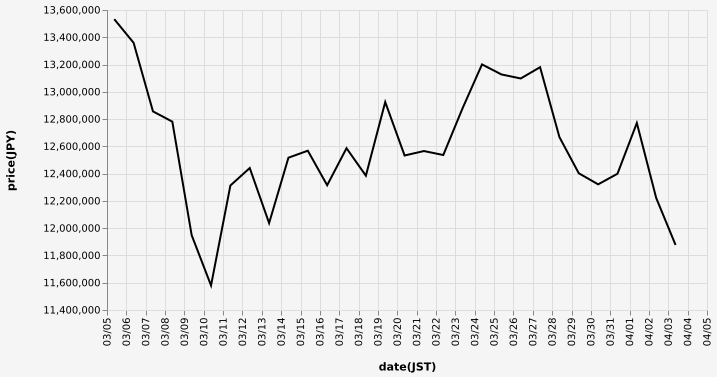…現在のビットコインの日本円チャートだ…