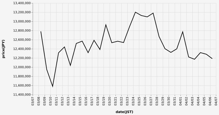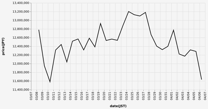 …現在のビットコインの日本円チャートを教えてやろう…