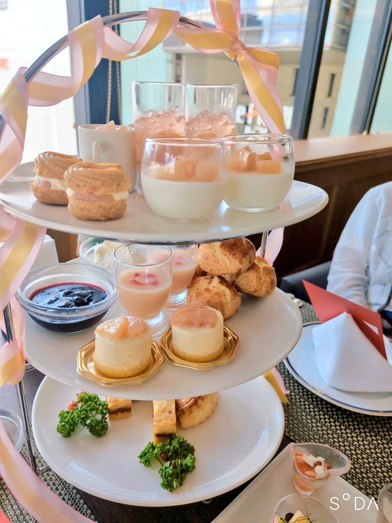 祖母・母・私の3人で川崎日航ホテルの桃アフタヌーンティー行ってきた! 親孝行ということで楽しんできた🍑