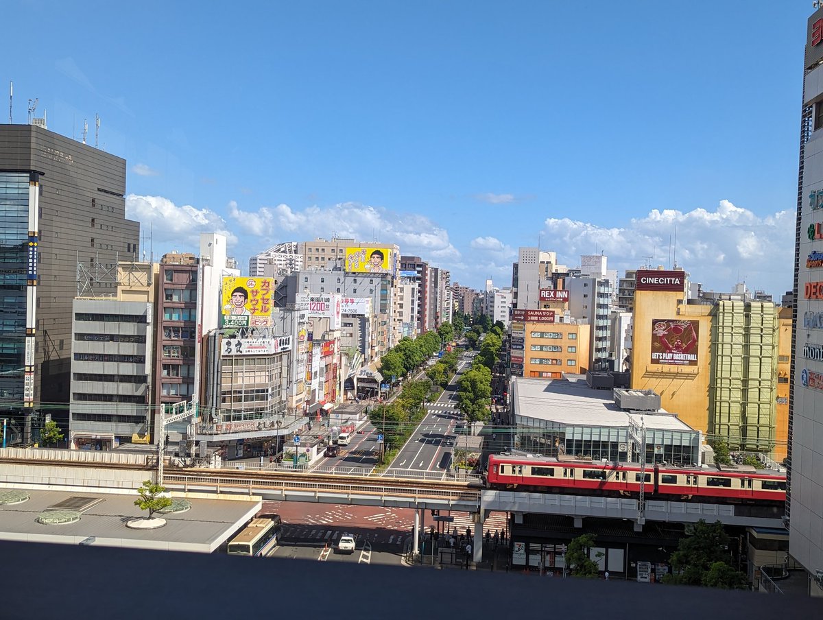 席から撮った川崎駅周辺、カプセルサウナの広告がいい味出してて好き