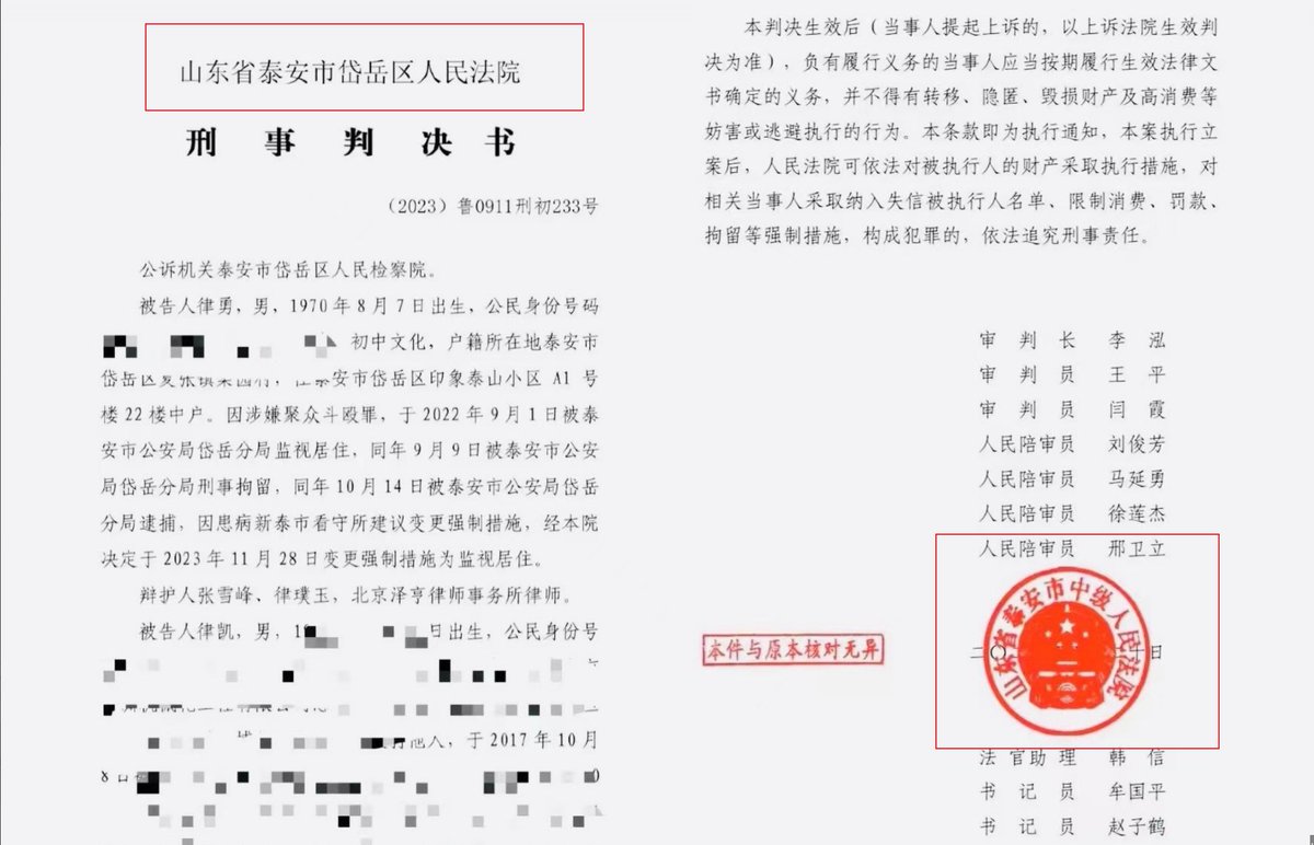5月24日,有律师在微博发贴称,山东泰安岳岱区人民法院的一份判决书末尾处盖上了山东泰安中级人民法院的印章。